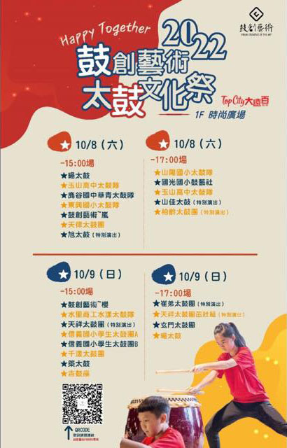 「第三屆鼓創藝術太鼓文化祭」在2022年10月8日~9日國慶假期連續兩天在大遠百時尚廣場舉辦,天律太鼓團自第二屆開始便參與演出,今年共有暘太鼓、鼓創藝術-嵐、鼓創藝術-櫻、玄門太鼓團、千漾太鼓團、築太鼓、吉鼓座、山陽國小、信義國小、國光國小、東興國小、鹿谷國中、玉山高中、水里商工等太鼓團參與演出。