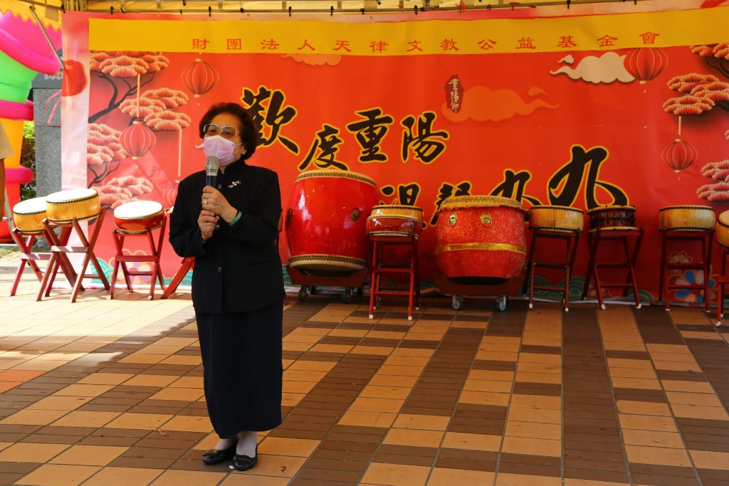 陳董事長致詞時表示,現代社會許多優良傳統文化逐漸被淡忘,舉辦『歡慶重陽 溫馨九九』的活動,是為了推行『 敬老尊賢 』的優良文化,老人家們需要社會的關懷,因此帶領基金會的義工來服務長者,有義剪、筋絡按摩、健康餐盒、太鼓表演、薩克斯風演奏、點燈祈福等活動,藉由這些身心靈的關懷活動,祝福各位長者都能平安健康快樂。
