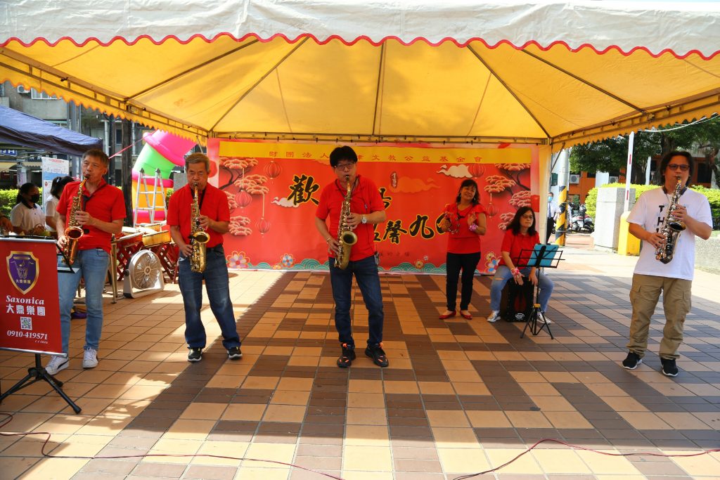 懷舊歌曲是敬老活動不可或缺的一環,林宣成壇主與陳樟卿前賢帶領大鼎樂團共襄盛舉參與義演,在薩克斯風悠揚的懷舊歌曲演奏下,讓長輩們重溫舊日情懷,會場充滿溫馨與歡樂的氣氛。